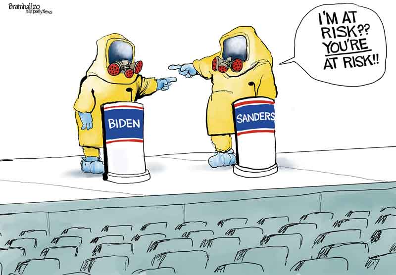 Biden cried, "All of you who've been knocked down, who've been counted out, who've been left behind, this is your campaign!" But that's not his line, it's Bernie's. And Bernie stood up and said, "I tell you with absolute confidence that we are going to win the Democratic nomination and we are going to beat Trump." I know a number of guys from Brooklyn and none of them would say "with absolute confidence" except ironically. "Absolute confidence" is the code word for Highly Dubious.