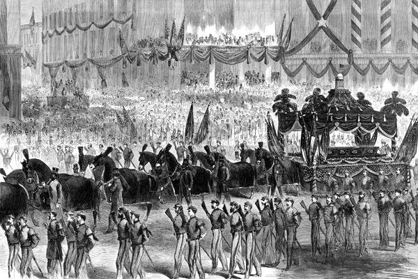 It was four days later, on Friday evening, when the president ventured out into a joyful, festive Washington for an evening at Ford's Theatre, that he was shot. Carried to a boarding house across the street, Lincoln died at 7:22 a.m. on Saturday. It is often told that all those crowded around his deathbed turned to Secretary of War Edwin Stanton, who said simply, "Now he belongs to the ages." As the writer Adam Gopnik has noted, these words are the best-known epitaph in American history, and probably the finest: "They seem perfectly chosen, in their bare and stoical evocation of a Lincoln who belongs to history alone, their invocation not of an assumption to an afterlife but of a long reign in the corridors of time, a man now part of eternity."