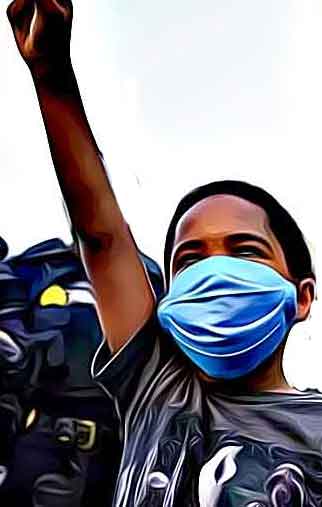 Behind the diverse crowd, Donavon Butler, 33, drove a white minivan with his wife and four children inside. His 5-year-old son, Chase, hung out the back window with his right fist raised and his left hand holding a cardboard sign that said "Mama! I can't breath. Don't shoot."