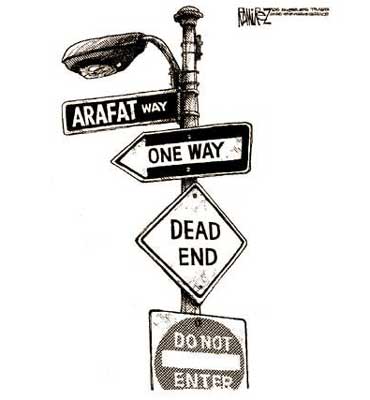 Chairman/President/Chieftain Arafat now has appointed a new prime minister the way a ventriloquist changes puppets. Or, in the unlikely event this new one turns out to have a mind of his own, he can be jettisoned, too. Yasser Arafat is once again king of the bloody hill. He'll continue to call the shots, literally, from the ruins of his government complex in Ramallah - a perfect symbol of where he has brought the Palestinian cause. Yasser Arafat wasn't about to take the slightest chance on peace breaking out. That much celebrated roadmap (Copyright, U.S. State Department, Washington, D.C.) always did lead right over the cliff. Why? Because Mahmoud Abbas didn't dare take on Hamas, Hezbollah and the terrorist branch of Yasser Arafat's own Fatah. Not to mention all the other gangs and freelance killers roaming the West Bank and Gaza. And so long as they were tolerated, there was no real chance of peace. All this new prime minister asked was that the terrorists lay off for a few months, and even that was too much. Mahmoud Abbas, a slight man with slight authority, never had the will or power to crush the crazies. And without a willingness to risk (civil) war, no Palestinian regime can make peace. The official line out of Washington is that its roadmap is still the way to go. What else can the diplomats say? Well, if they were serious, they would say: No crackdown on terror, no negotiations. They'd tear up their roadmap and announce that negotiations are futile so long as one side is bent on war. A pretend roadmap to peace is worse than no roadmap at all, for it allows the war to continue and allows cynicism to fester. Any map would do if all could agree on the destination. The problem is that each side had a different ideas of where this map should lead. At least since the partition of Palestine in 1947, not to mention the Peel Commission's report in 1937, one side has been willing to settle for two states in one Holy Land. But Yasser Arafat, and before him Ahmed Shukairy, and before him the Grand Mufti, would never go along, not really. As Abba Eban once commented, the Palestinians have never missed an opportunity to miss an opportunity. Has ever a people been so cursed in their choice of leaders? We've now come to the end of the road(map). Both Israelis and Palestinians now realize, 10 years later, that the hopes of peace raised by the Oslo Accords were but a prelude to war. Remember the glowing pictures of that press conference on the White House lawn celebrating the arrival of peace in the Middle East? It was one of the many shining illusions of the Age of Clinton. Its centerpiece was the famous handshake between Yasser Arafat and Yitzhak Rabin, the Israeli general and then prime minister. You could see the struggle the old general was having shaking the bloody hand of the old terrorist. Yitzhak Rabin's hand visibly shook, as if it had suddenly developed a tremor. His body was trying to tell him what his mind would not admit: He and his people were about to be taken for one hellish 10-year ride. The basic issue in the Arab-Israeli dispute isn't whether there should be a Palestinian state it's been offered time and again, and one (Jordan) actually came into existence. The basic issue has been whether there will be a Jewish state after "peace" is made. Until that issue is addressed, seriously, sincerely, without still more diplomatic pretenses, there will be no peace only brief lulls between attacks. With the fall of Mahmoud Abbas, another pretense now has evaporated, like a trickle of water in the desert, and Yasser Arafat is in the ascendant again. Which means war is. How reach for genuine peace this time? The world could start by recognizing harsh reality, and stop pretending that this is all some vague Cycle of Violence that no one is really responsible for continuing. Or that all the United States, Israel, the Palestine Authority are equally responsible for this latest failure. So long as terror is tolerated, it will continue. So long as terrorism is granted a kind of moral equivalence with those defending themselves, it will thrive. Negotiating with terrorists, and trying to work something out with them, which is what Mahmoud Abbas proposed, will soon enough undermine the negotiator, not the terrorists. Which is what happened to Mahmoud Abbas. Let's not make the same mistake. Every weekday JewishWorldReview.com publishes what many in Washington and in the media consider "must reading." Sign up for the daily JWR update. It's free. Just click here.