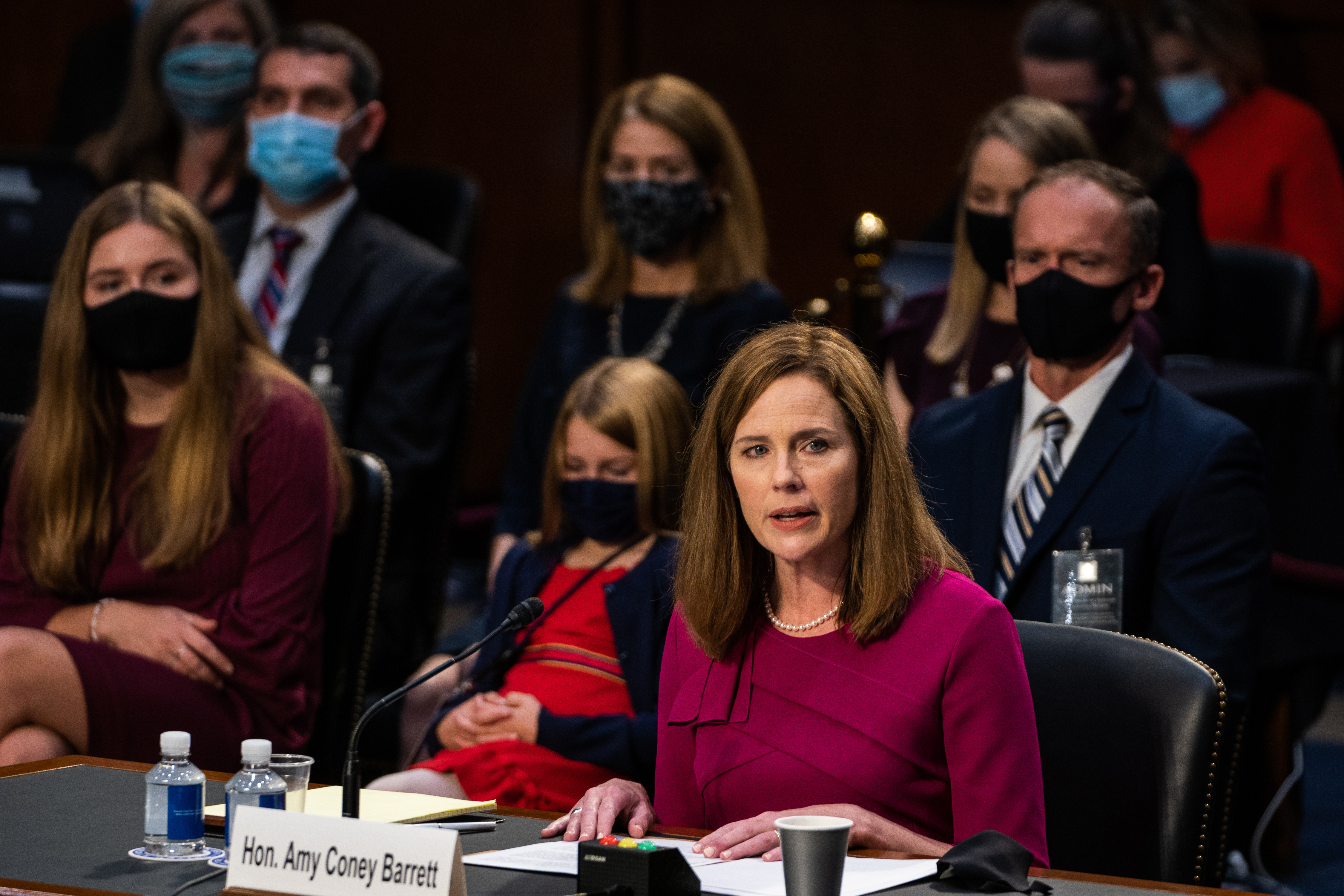 Supreme Court nominee Amy Coney Barrett speaks before the Senate Judiciary Committee on Monday, Oct. 12, 2020. Washington Post photo by Demetrius Freeman