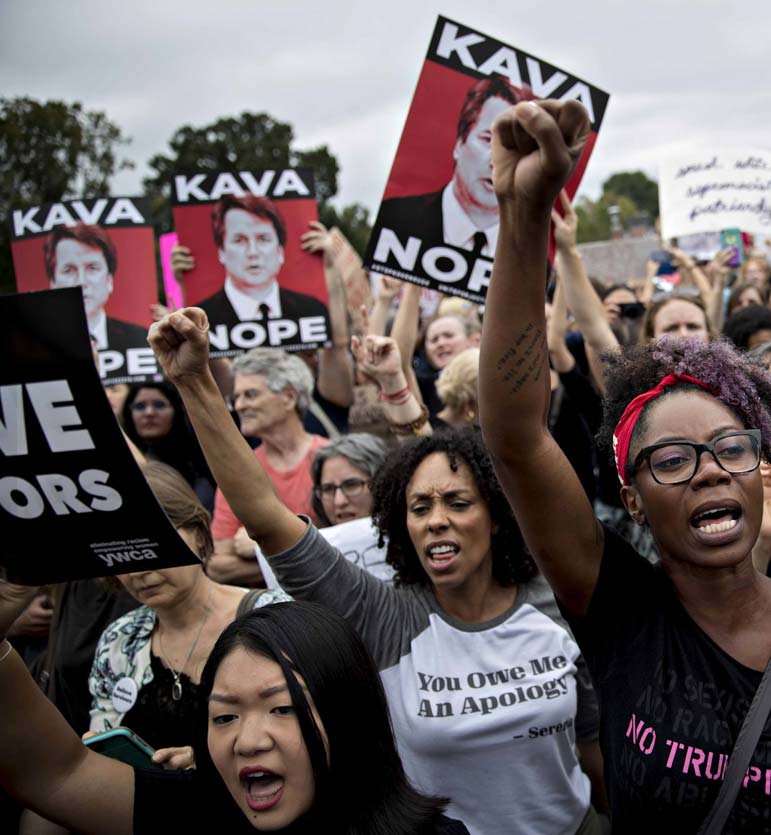 "Rape apologist" was the slogan the Women's March tweeted over Collins' photograph in an activist appeal for campaign dollars for a prospective opponent, whomever that may be, in a race to retain her Senate seat in 2020. The appeal for money was set in motion even before she cast a vote, by a crowdfunding website threatening her with early financial pledges for an opponent if she didn't vote no. Such an appeal may be a violation of federal law against extortion or be perceived as a bribe.
