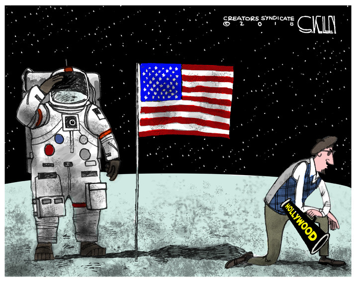 But in fairness to the filmmakers, the idea that this wasn't a giant leap for all mankind -- as Armstrong famously said and as the plaque on the moon declares -- is silly, too. Landing on the moon was widely regarded as a human achievement around the world. But that shouldn't detract from the national pride Americans feel for it. It should complement it.