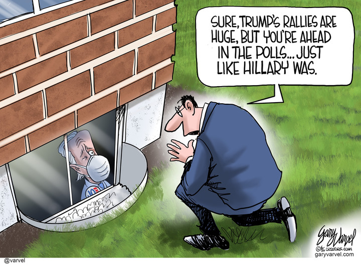 Seriously, folks. This is no laughing matter. The coronavirus is no excuse for Biden not to personally campaign and show himself to the people. Any other presidential candidate would be clamoring for face time to present his case to the American people. Actually, any other Democratic presidential candidate wouldn't have to demand media attention, because they would give the candidate wall-to-wall coverage to increase his exposure. But Biden remains in the shadows.