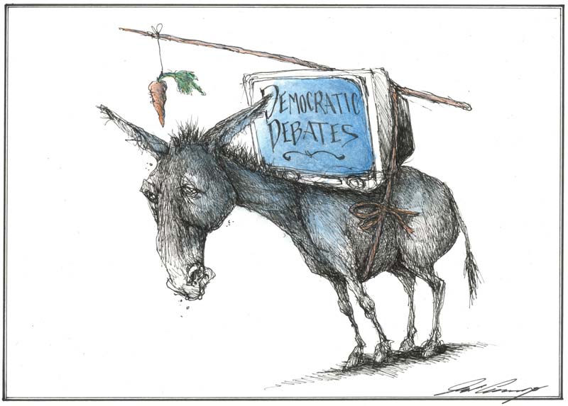 In the first of these Democratic debates last June, the total TV audience (over two nights) topped 33 million. In the second debate, in July, the audience totaled 19.4 million. In the third, it was down to 14 million. It dropped again for the fourth, and for the fifth, and by the time candidates and moderators walked onto the stage at Loyola Marymount University in Los Angeles for the sixth of these affairs, the audience had dwindled to a mere 6.1 million. How low can it go?